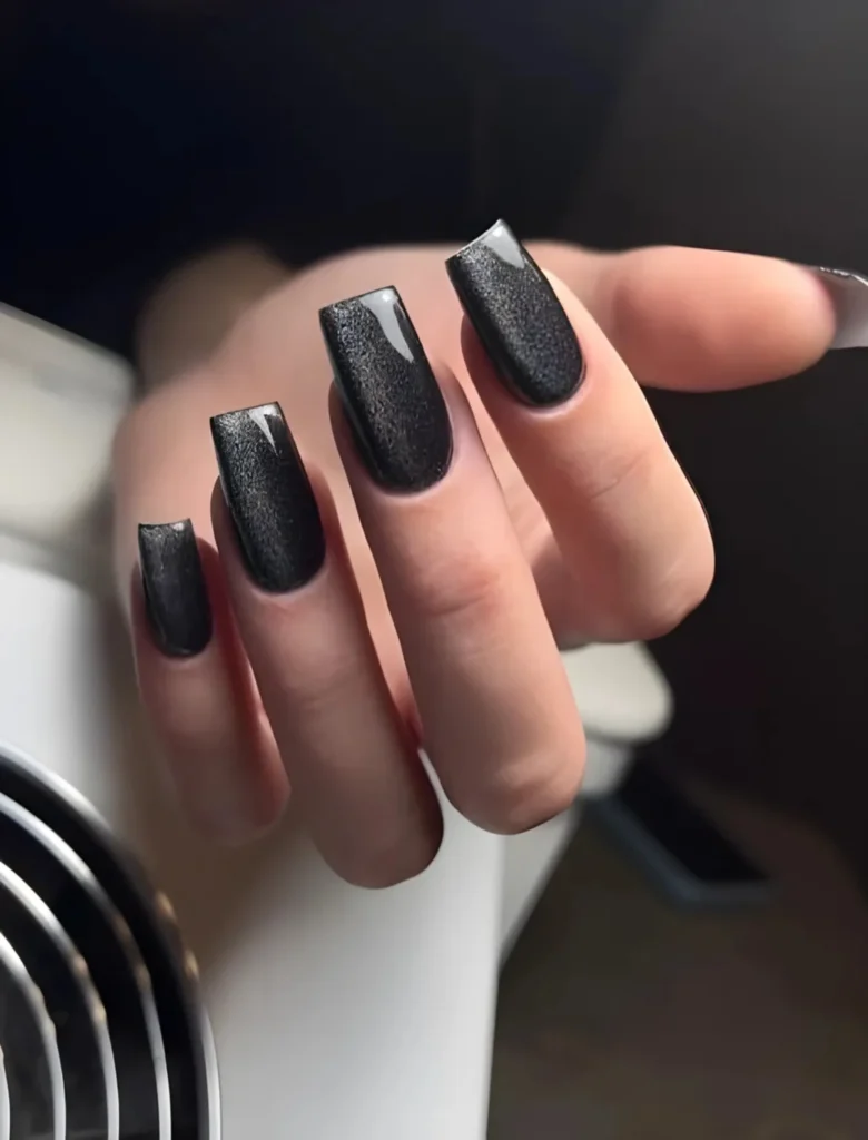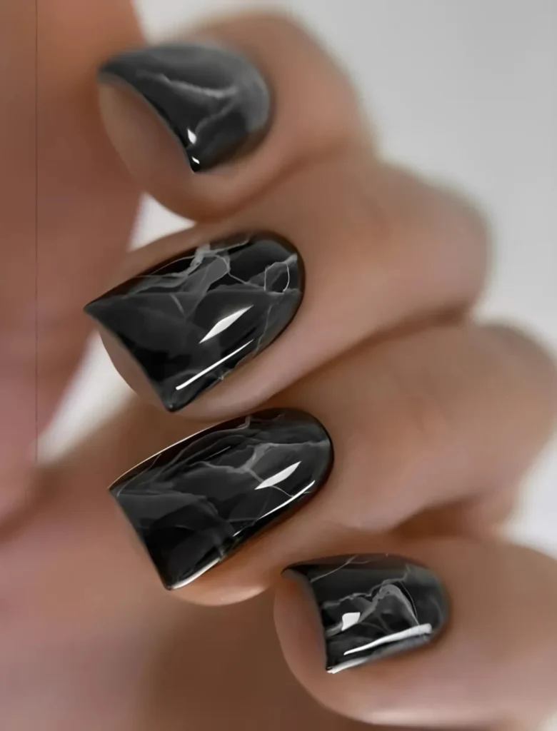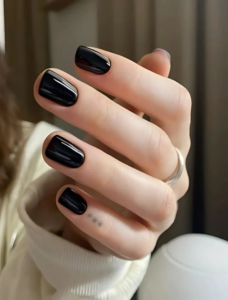 There’s something effortlessly chic about glossy black nails. This deep, dramatic color is perfect for those who enjoy making a statement. While black nails have always been associated with edgy and goth aesthetics, this season they are reimagined with a glossy, high-shine finish, making them more sophisticated and polished.