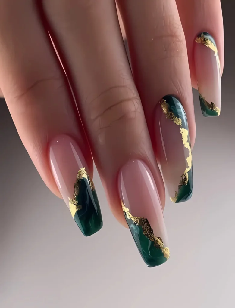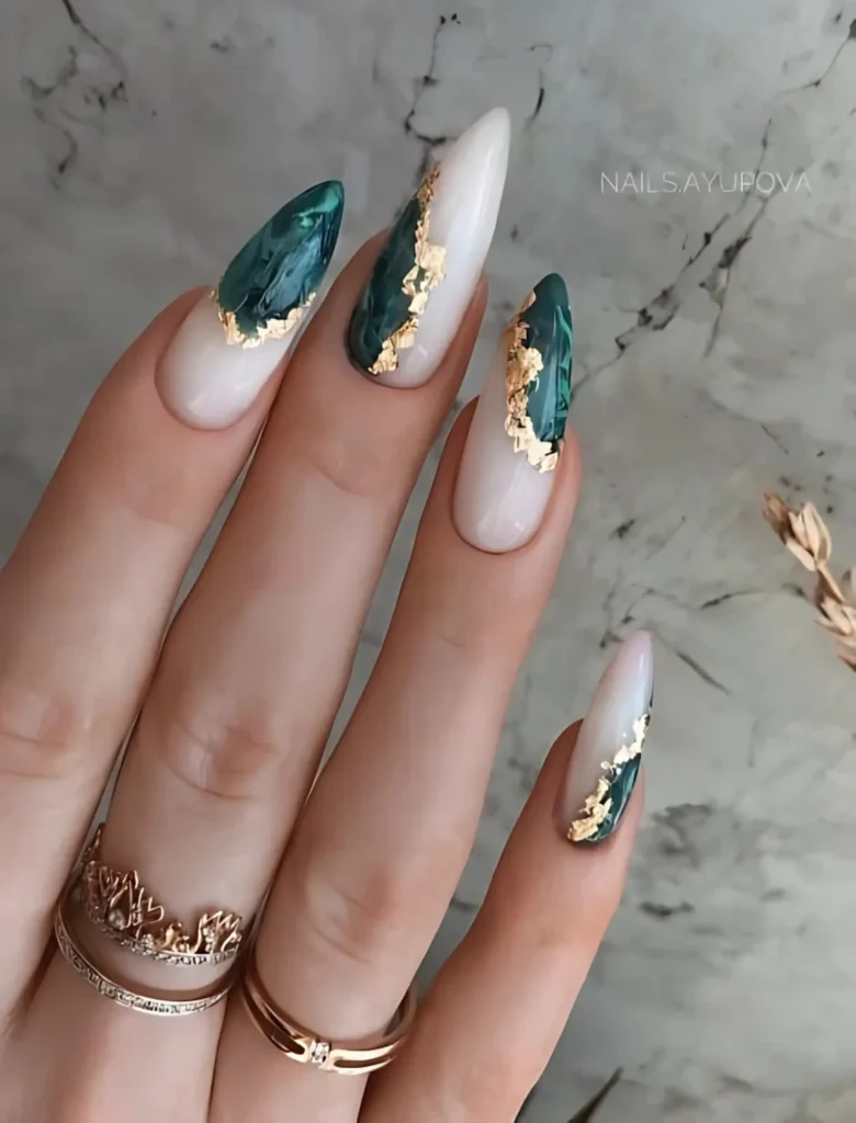 To achieve this effect, nail technicians often use water marbling or blending techniques, where the polish is swirled on the nail’s surface to mimic the natural stone’s appearance. It’s a versatile design, offering endless opportunities for customization in color combinations, from icy blues to rich greens.
